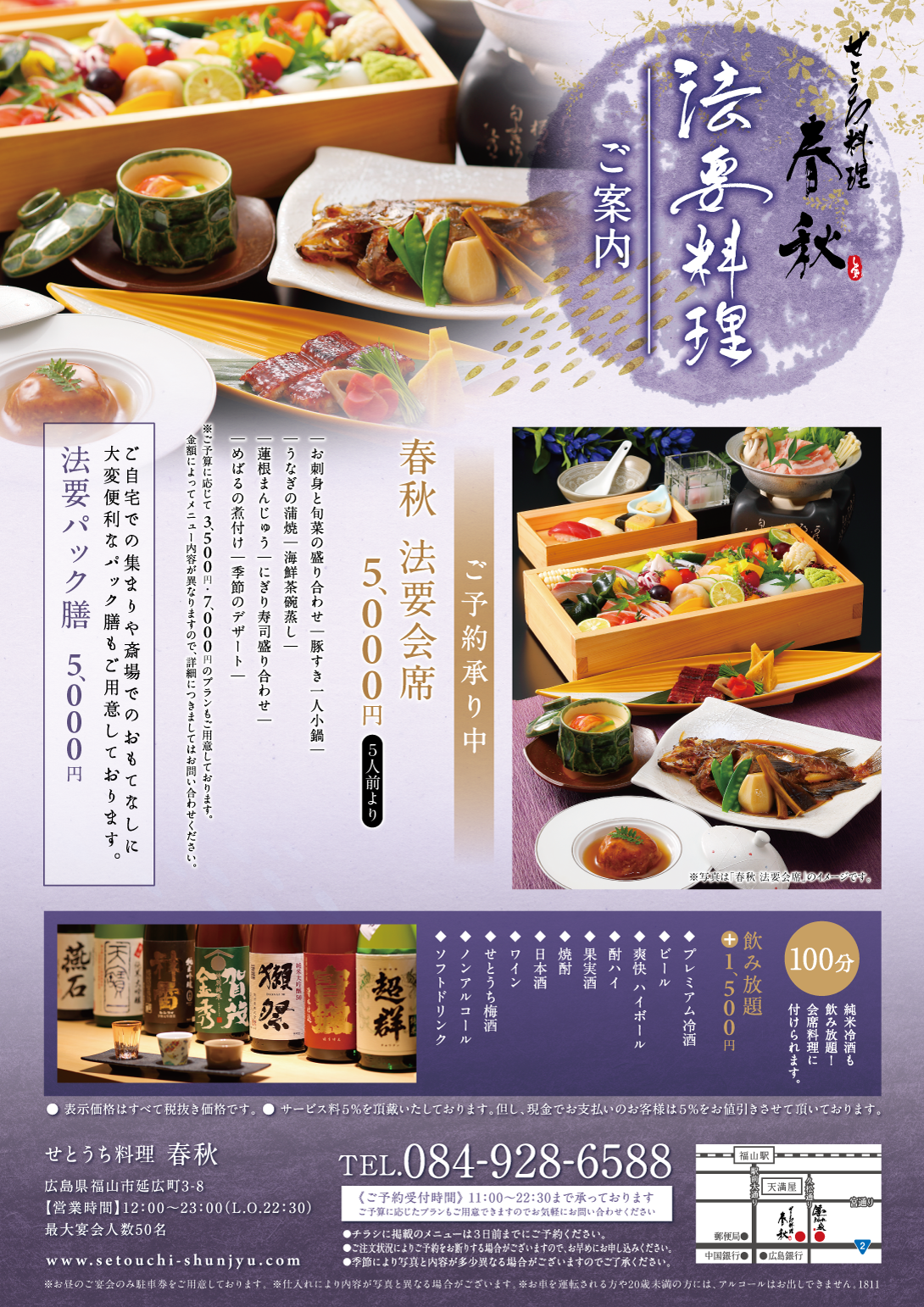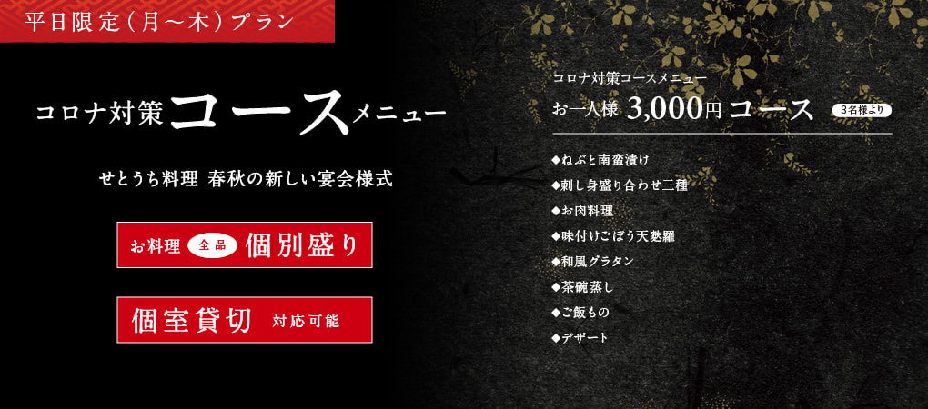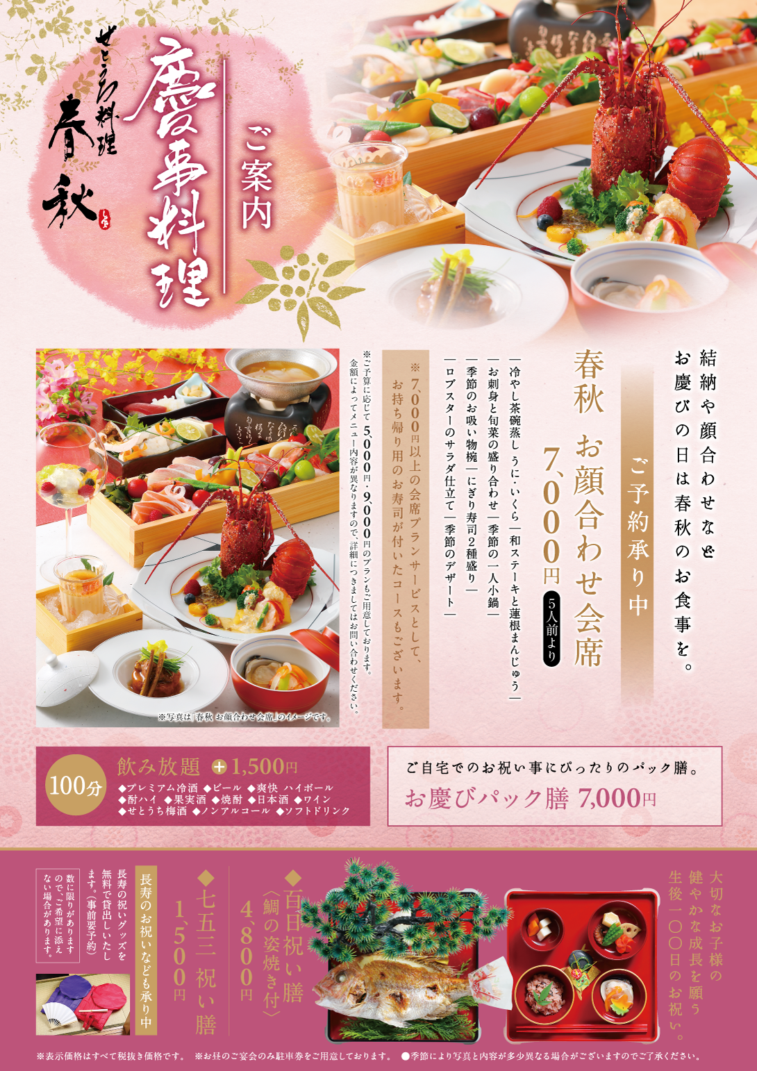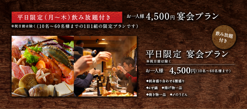 ※ご宴会の人数変更に限り、3日前までにご連絡ください。