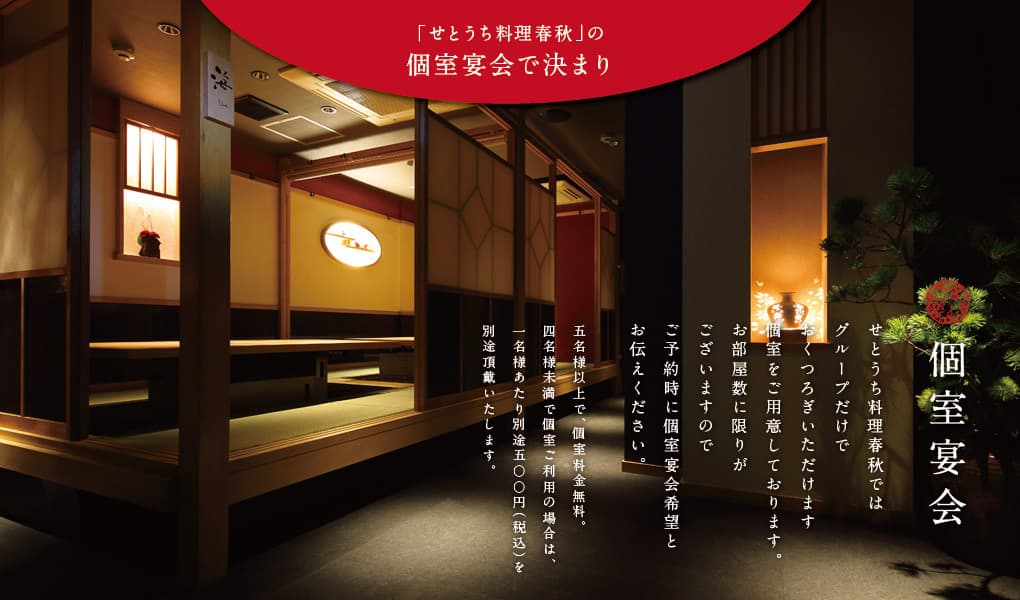 2名様での個室利用に限り、お1人様800円(税込)の個室利用料が発生します。