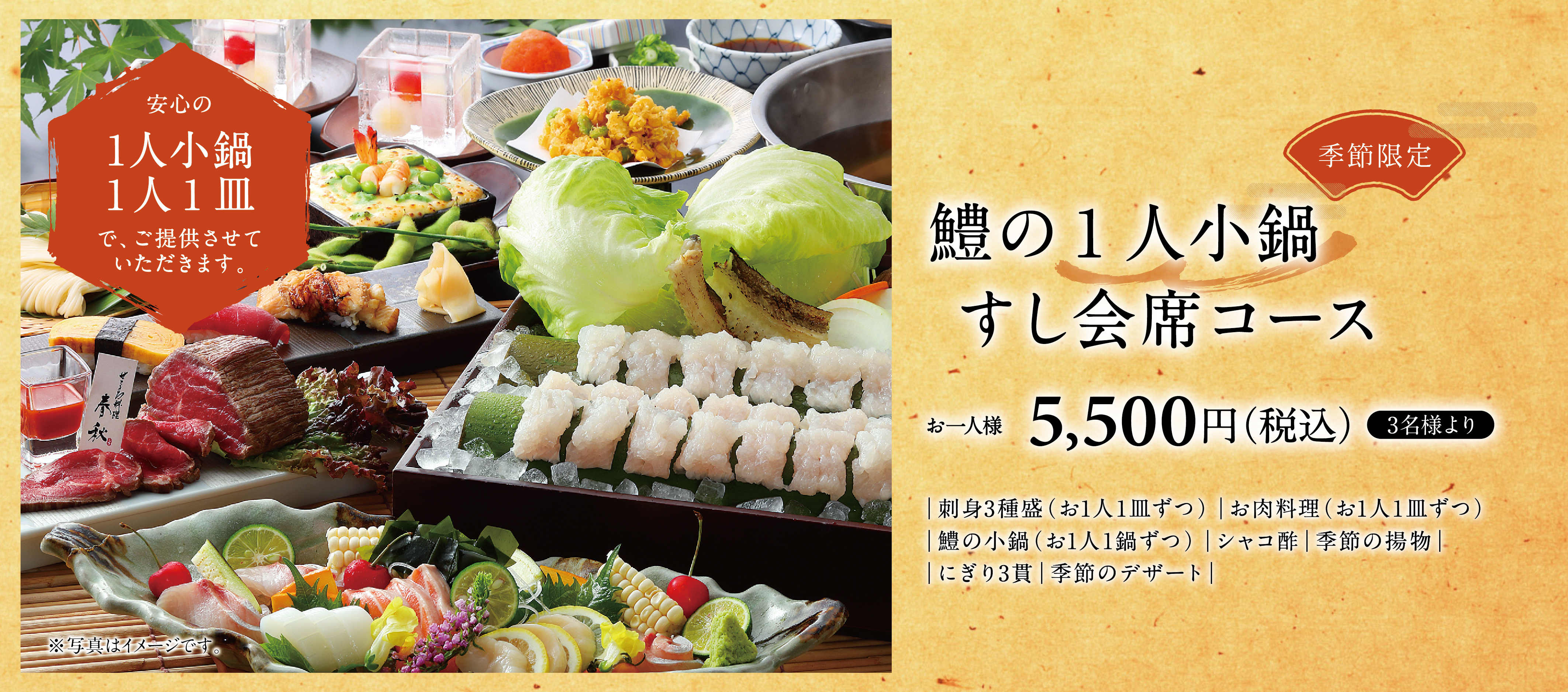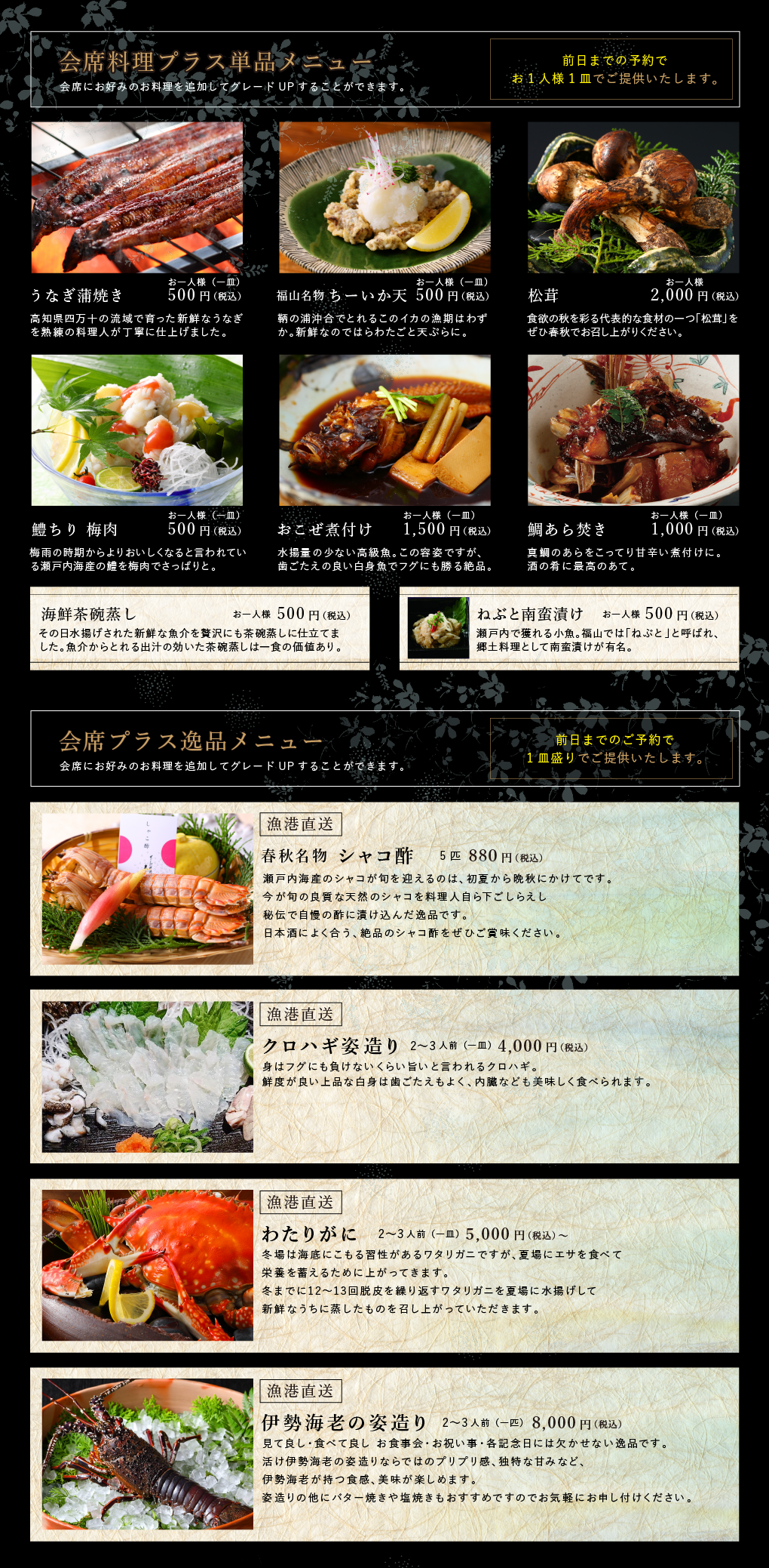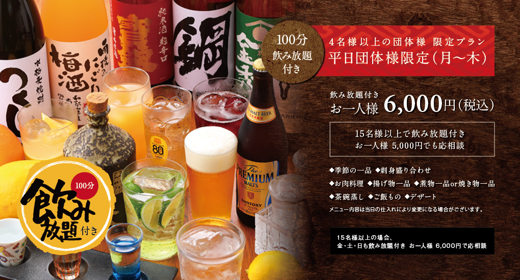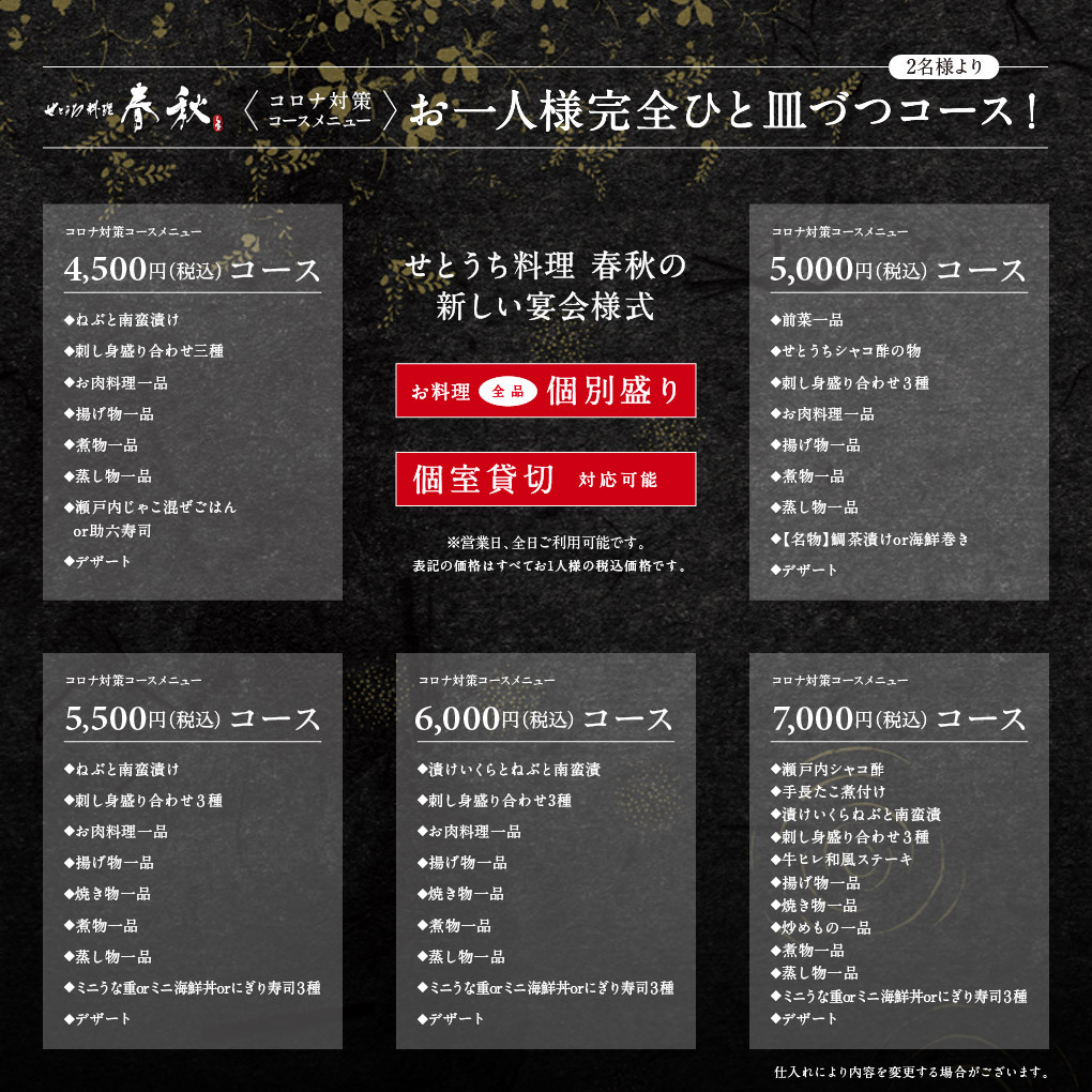 ※ご宴会の人数変更に限り、3日前までにご連絡ください。