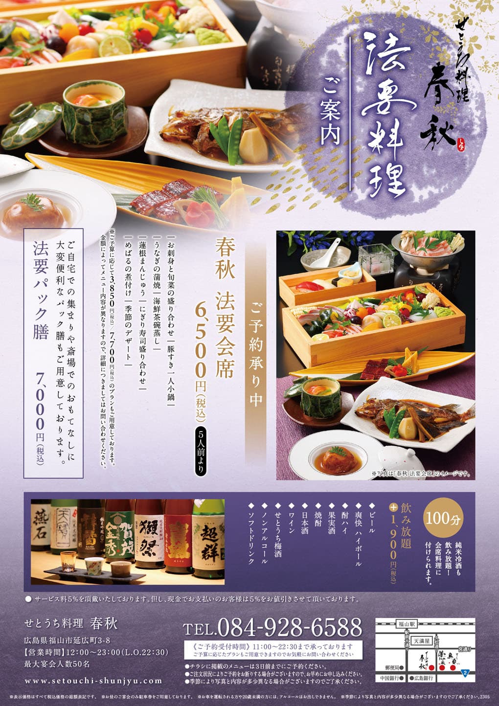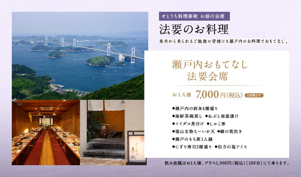 また、ご法要のお食事の席として在りし日の想い出を語りあうお席をご用意いたします。